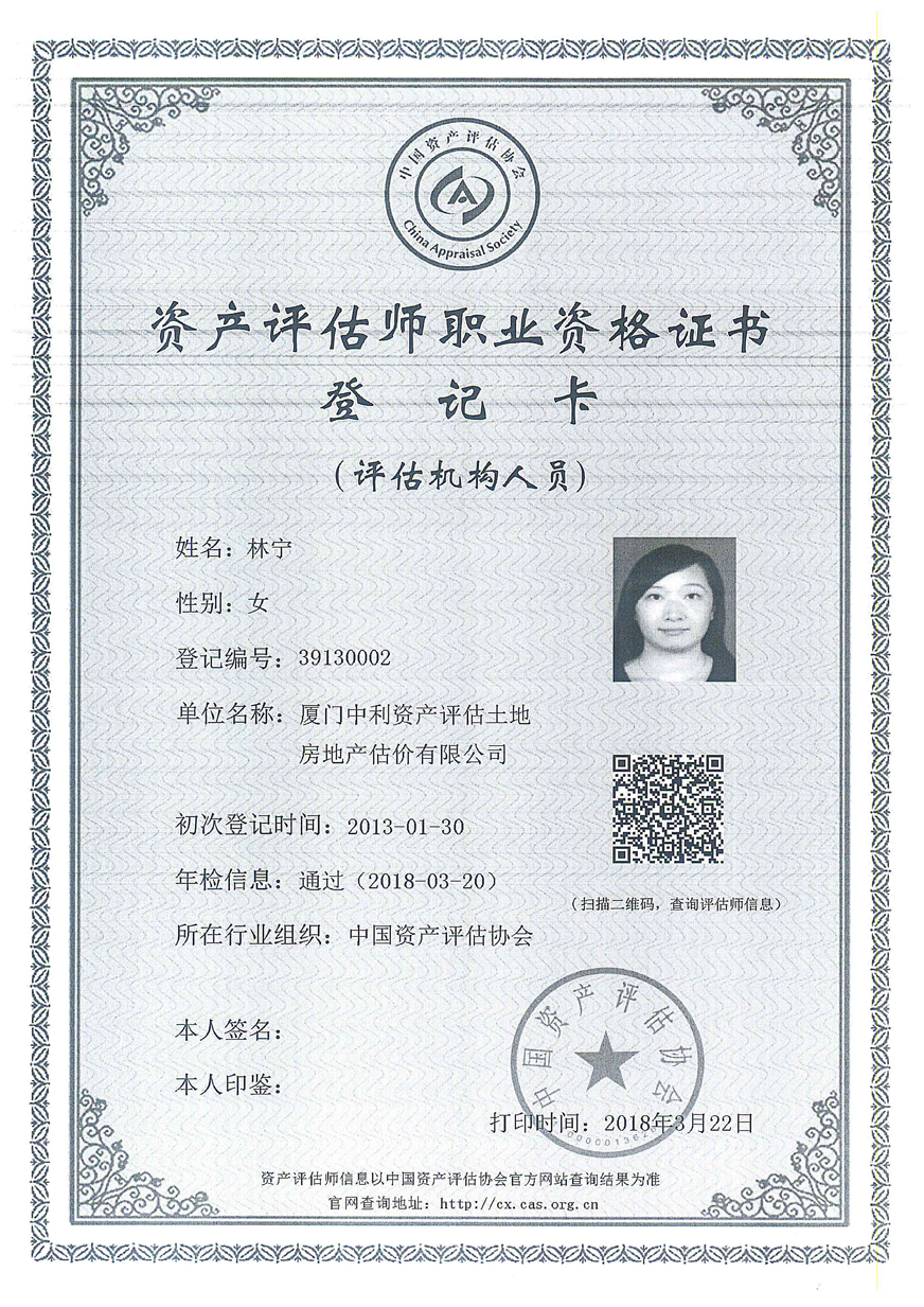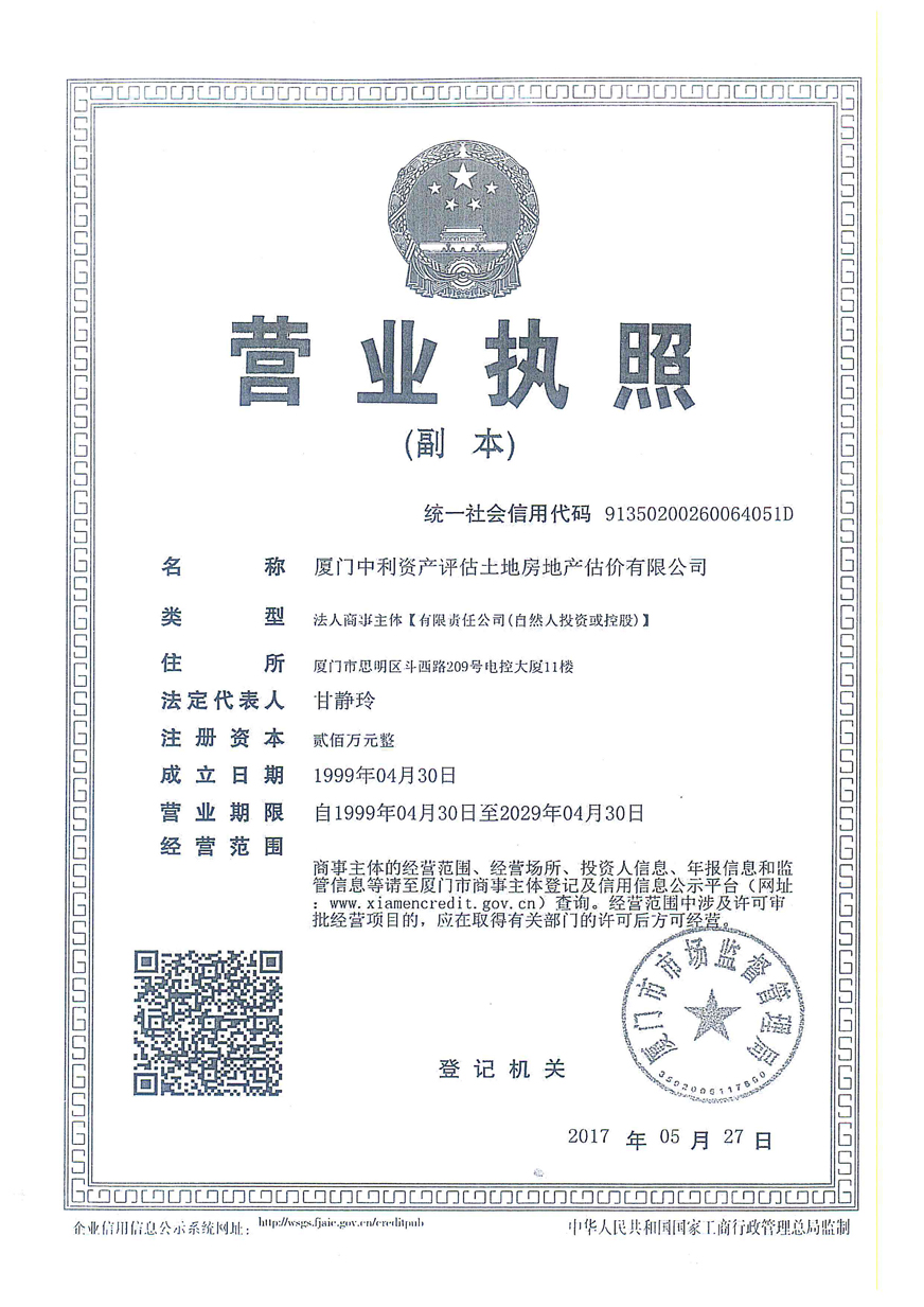 3. 廈門中利資產(chǎn)評估土地房地產(chǎn)估價有限公司營業(yè)執(zhí)照、評估資格證書復印件及注冊評估師林寧、鄭婷婷資質證書復印件;