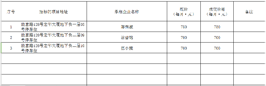根據(jù)思明區(qū)國(guó)有企業(yè)資產(chǎn)出租管理的相關(guān)制度,我司2020年3月2日上午9:00起于觀音山營(yíng)運(yùn)中心2號(hào)樓2層2號(hào)會(huì)議室進(jìn)行公開(kāi)招租現(xiàn)場(chǎng)開(kāi)標(biāo),現(xiàn)通過(guò)思明控股網(wǎng)站對(duì)外發(fā)布成交公告,內(nèi)容如下: