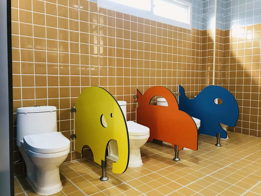 ▲ 衛(wèi)生間色彩上,以米黃色為主,點綴其他色彩,給空間帶來溫暖干凈且不失靈動的效果。