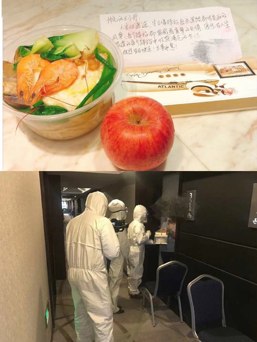 今年春節(jié)期間,因疫情住在隔離酒店的隔離人員不能和家人、朋友團(tuán)聚,但酒店專班也為每一個在住隔離人員都準(zhǔn)備了年貨、應(yīng)景的年夜飯、在酒店門口等貼上春聯(lián)、掛上紅燈籠等,讓隔離人員也都能感受到年味兒,過上一個別樣的新年。