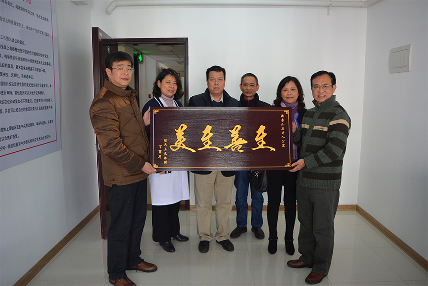 2018年春節(jié)前夕的一天下午,曾住在源泉山莊老年公寓的陳天賜老人家屬子女三兄妹給公寓送來了一塊制作十分精美的榮譽牌匾,上面醒目的寫著“至善至美”四個金燦燦的字,公寓領導和護理部工作人員與老人家屬一同拿著牌匾合影留念,托著這塊沉甸甸的特別有分量的牌匾,大家心里非常感慨,這是老人及家屬對我們老年公寓全體工作人員的認可和由衷感激!關于此牌匾的由來,還有一段感人故事。