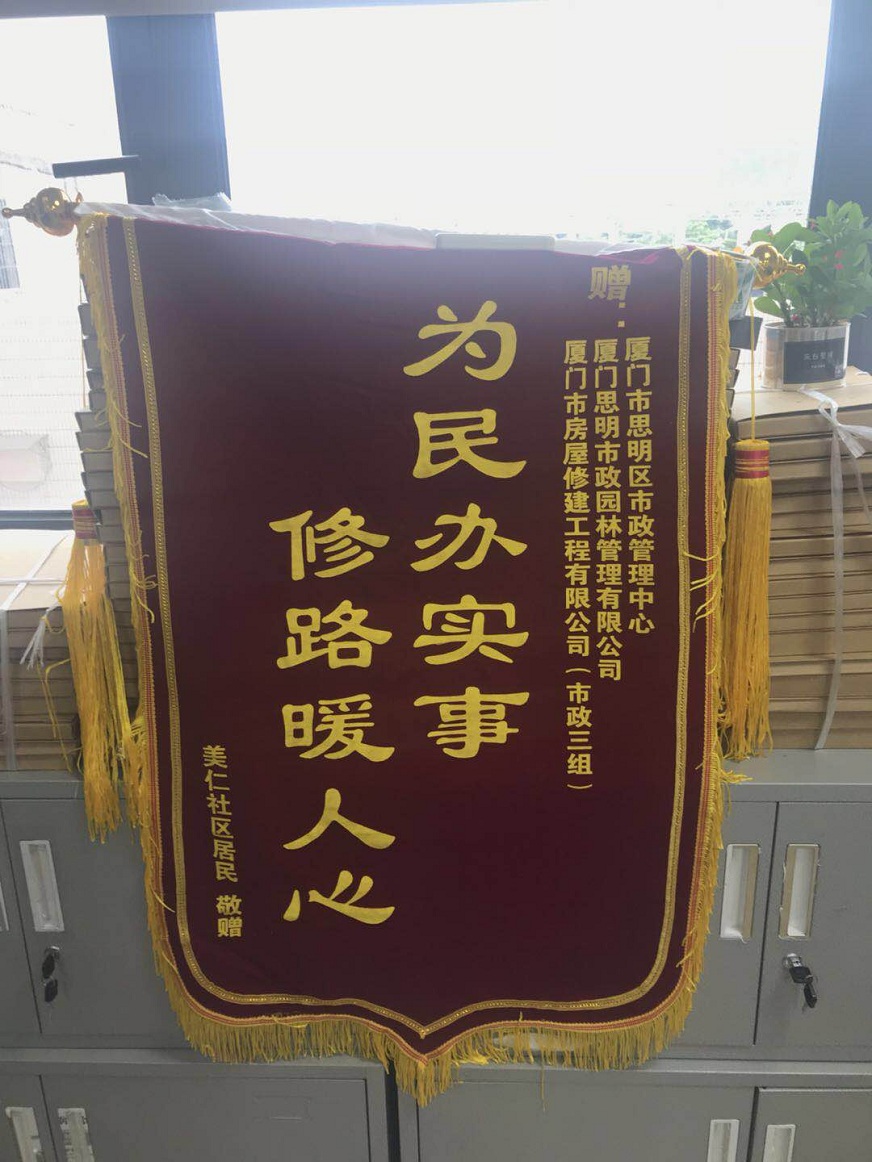 日前,思明市政園林管理有限公司收到了美仁社區(qū)居民送來的一面寫有“為民辦實(shí)事 修路暖人心”的錦旗,對公司在美仁社區(qū)進(jìn)行的老舊小區(qū)市政設(shè)施管養(yǎng)和提升工作表示了衷心的感謝。
