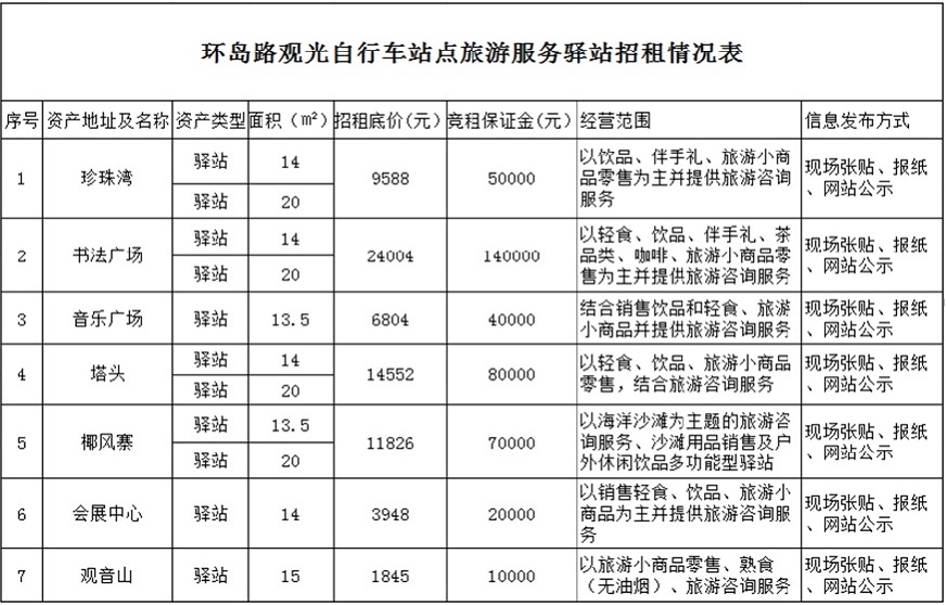 環(huán)島路觀光自行車站點旅游服務驛站公開招租